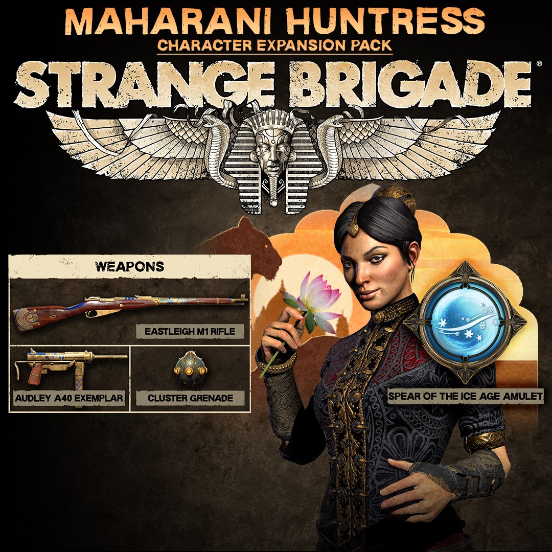 Grab your gear, a new Strange Brigade member has joined the hunt: Anjali Khan, tracker extraordinaire!\n\nThe secret Maharani ruler of a prosperous Indian state, it was only after the discovery of an unholy curse on her family that Anjali joined up with the Strange Brigade in the hopes of tracking down and defeating the demon that afflicted it once and for all. \n\nThe Maharani Huntress character expansion pack includes playable character Anjali Khan and the following:\n\n- Spear of the Ice age amulet power\n- Audley A40 Exemplar SMG\n- Eastleigh M1 rifle\n- Cluster Grenade special item\n\nAll contents of this pack can be used in any mode, solo or in online co-op.
