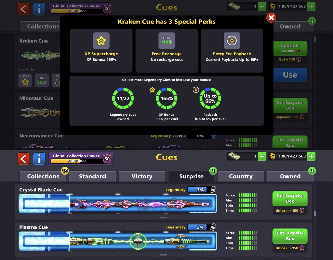 - Cue Collection Power: 50