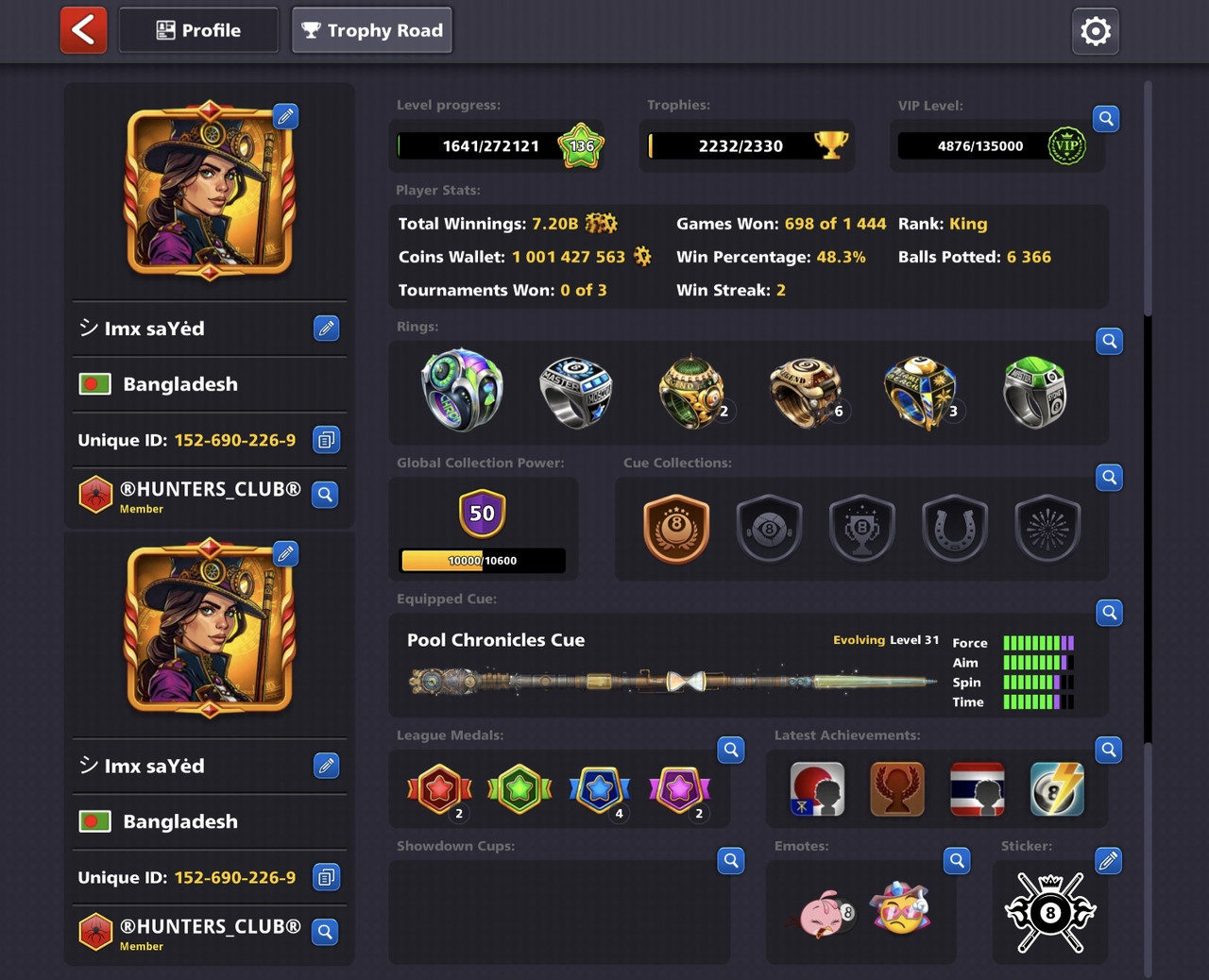 - Trophies: 2232 / 2330