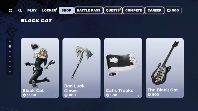 For those who prefer not to purchase the entire bundle, each cosmetic item will be available separately in the item shop. The prices for these individual items have also been uncovered by dataminers. The Black Cat skin itself, including a special Lego-style variant, will cost 1,500 V-Bucks. The accompanying pickaxe and guitar design are both priced at 800 V-Bucks each, while the wrap for customizing weapons will also cost 800 V-Bucks.