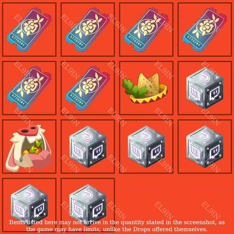• Only items from the current event are guaranteed to drop, previous ones may be limited by the game developer