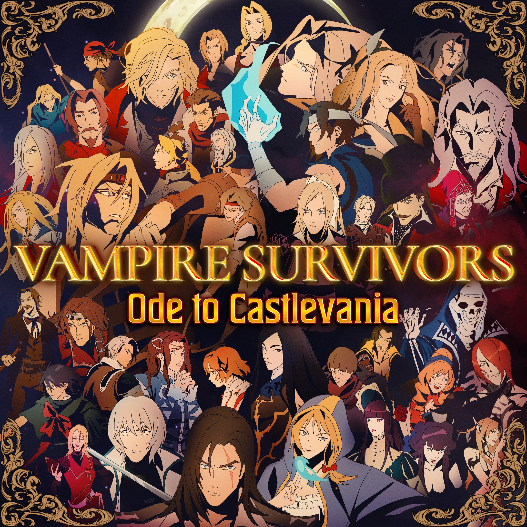 The Vampire Survivors have come a long way in their honorable hunt, and after joining forces with the Belmont Family, they are the closest they\'ve ever been. Finally, within their grasp... A vampire. Possibly, at least. \n\nThe sun has set on Dracula\'s Castle once more, and as the moon rises a hellish horde of murky Mudmen, ghastly ghosts, and frightening Fleamen take the stage as the battle of good and evil rages once again. Unleash an arsenal of new Vampire-vanquishing weapons upon these beasts and leave a trail of doom in your wake before attempting to rid the world of the unspeakable terror himself. Do not be blind to the shadow that looms over you Survivors, as your quest has only just begun! It\'s all very serious stuff, so now let\'s pump up the volume and let\'s go, this is Castlevania in Vampire Survivors, baby! \n\n20+ New characters \nWhat a horrible night to have a curse, especially if you are: \n\nThe Belmonts, your favorite whip-obsessed family of vampire hunters, including Simon, Richter, Trevor, and even Sonia. \nThe Belnades, a myriad of legendary witches from throughout the history of the occult clan. Sypha, Yoko, and even distant relatives like Charlotte Aulin and Maria Renard have their spellbooks ready. \nOther Heroes, not just Jonathan and Charlotte, but Jonathan Morris AND John Morris?! Amazing allies abound, from Shanoa to Eric Lecarde. \n\n40+ New weapons \nFighting the forces of evil is hard as hell: \n \nWhips: Whole lot of whips. More whips than we can count (it\'s eight).\nSpells: elemental magic has finally made its way in Vampire Survivors, offering a wide array of spells inspired by Portrait of Ruin, Harmony of Dissonance, and Order of Ecclesia \nMagic weapons: not any sword, but Alucard\'s Sword. And Alucard\'s Spear. Also Alucard\'s Shield. Etc. \nProjectiles: do you remember that time the Morris\' were throwing javelins and iron balls? \nGlyphs: Confodere, Vol Confodere, Melio Confodere, but also plenty of non-Confodere, we swear. \n\nSPECIAL WEAPON SELECTORS \nSome of these characters are famous for having a large amount of different abilities, so we probably all had a different experience in playing them in their original games. It would be silly of us to force you using these characters with an unchangeable weapon, so... well we ARE actually going to force a weapon on you, but not for long! \nYou\'ll be able to unlock at least one Weapon Selector for every single character; for example the Morning Star will let you choose any whip as a starting weapon for your friendly neighborhood-Belmont: \n\nA monstrously large Stage \nEnchanting mysteries and danger await those who enter: \n\nThe largest map Vampire Survivors has ever seen, stacked with sinister secrets and a bunch of baneful bosses. \n\n30+ New Music Tracks \nA ridiculous amount of remixes of Castlevania tracks from Vampire Survivors historic composers Daniele Zandara and Filippo Vicarelli, but also from fan-favorites Evelyn Lark and Keygen Church! \n\n♫ Vampire Killer, Bloody Tears, Simon\'s Theme, Leon\'s Theme, a lot of themes. \n♫ Moonlight Nocturne, Lost Paintings, Dance of Pearls, but like you\'ve never heard them before. \n♫ Aquarius, The Beginning, Divine Bloodlines, everything that screams ""this is Castlevania"". \n♫ An Empty Tome, Invitation of a Crazed Moon, Pitch Black Intrusion, so many hits from the more recent entries in the series. \n♫ Amber Scenery, Sarabande of Healing, Jaws of a Scorched Earth, and many others you didn\'t know the title of! \n\nOn top of that we have borrowed several dozens original tracks from Castlevania games. There is so much music we revamped the music selection panel for the occasion. \n\n-\nAnd the cherry on top: a man.